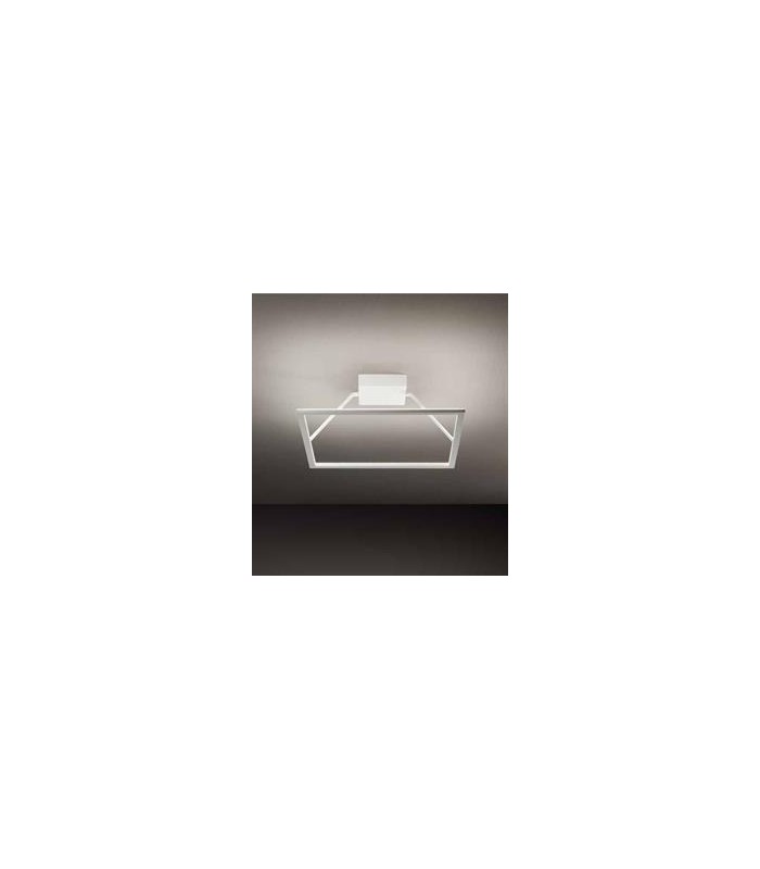 Quattro lampada da soffitto ha una forma quadrata con struttura in alluminio verniciato in bianco con finitura sabbiata. La lampada inoltre è dotata di una fonte luminosa a Led SMD 3000K schermato da un diffusore trasparente che permette alla luce di risultare morbida e diffusa.