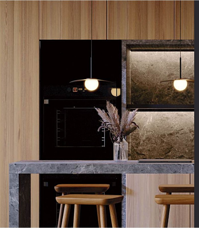Il diffusore in vetro soffiato opale consente un'illuminazione morbida e uniforme, riducendo l’abbagliamento e creando un'atmosfera accogliente.