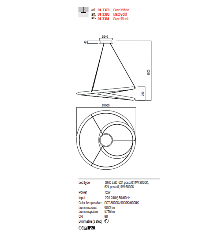 Il diffusore in PVC bianco garantisce una distribuzione omogenea della luce, creando un’illuminazione morbida e confortevole. CRI 90.