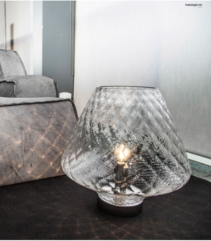Mazzega 1946 propone la nuova collezione di lampade dal design raffinato ed elegante, una collezione di lampade che prevede varie soluzioni di illuminazione degli spazi. Stiamo parlando di Snifter una lampada da tavolo o comodino con base e struttura in metallo cromato e composta da un prezioso diffusore dalle forme gentili e morbide in cristallo lavorato a mano con l'antica tecnica muranese ballotton, che conferisce alla superficie del cristallo un effetto di bolle e geometrie davvero unico.