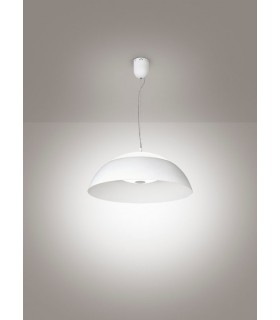 Lampada in sospensione a Led con struttura in metallo verniciato bianco. Doppia emissione di luce.