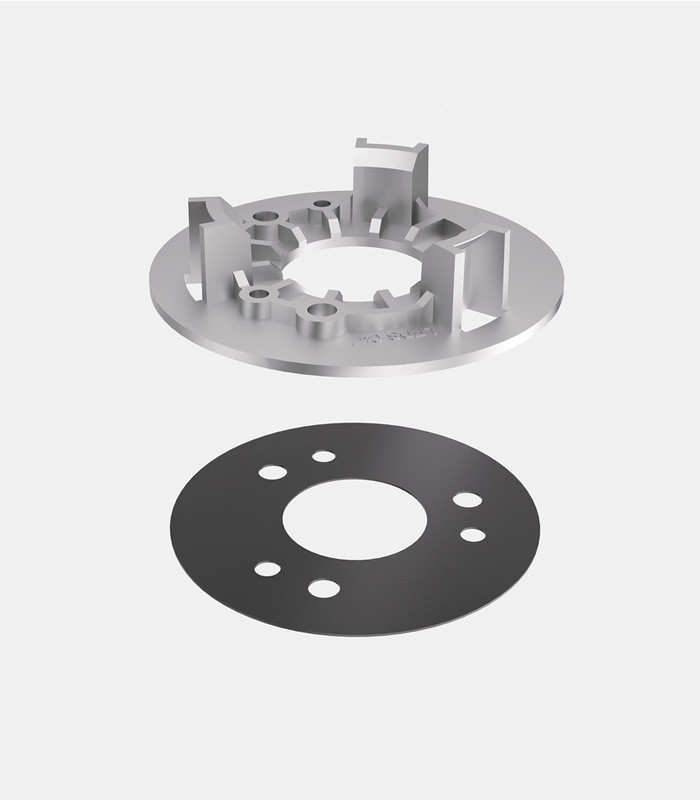 È inclusa una piastra in tecnopolimero per isolare la base dal contatto diretto con il terreno e per evitare eventuali graffi sull'alluminio durante l'installazione. Inoltre lo strato esterno di alluminio è trattato da una lavorazione speciale che ne previene l'ossidazione. Sono inclusi 3 fori extra per assicurare che i faretti rimangano assolutamente dritti durante l'installazione, senza alcuna inclinazione.