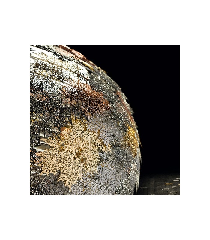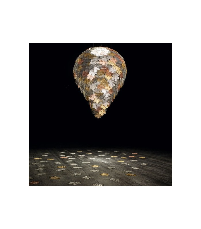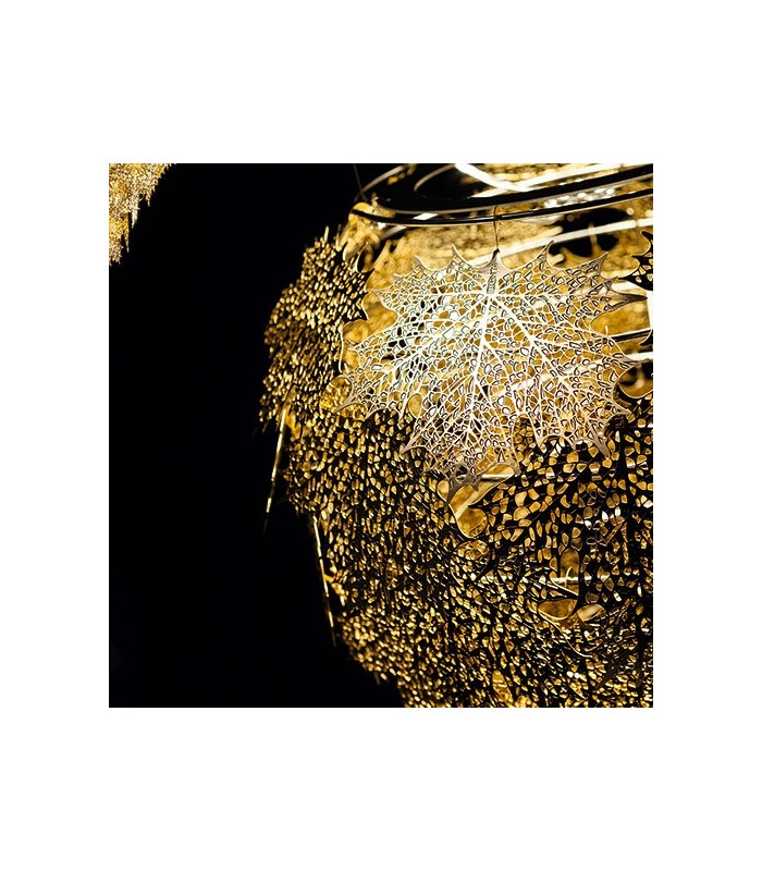 Vintage Maple lampada a sospensione è dotata di Led ad altissima luminosità, inseriti nella parte superiore della lampada in modo che la luce rifletta sulle foglie e filtri tra le fessure delle stesse illuminando in modo efficiente l'ambiente circostante. I riflessi generati creano effetti brillanti in tutto lo spazio.