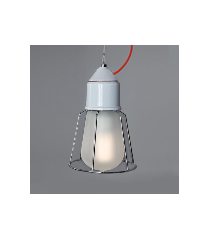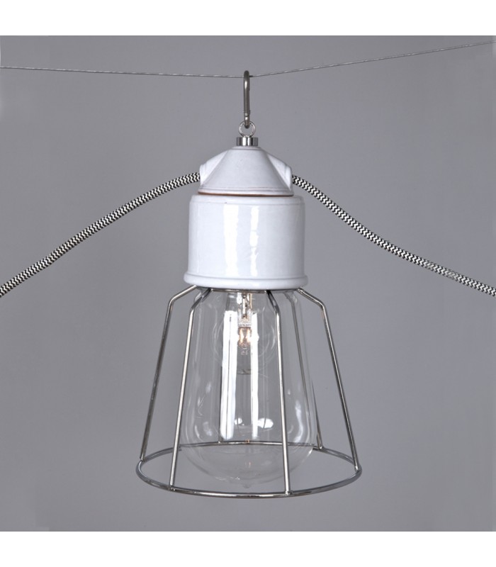 Sospensione in ceramica lavorata a mano con diffusore in vetro, disponibile in diverse finiture. Indicata per ambienti interni ed esterni.