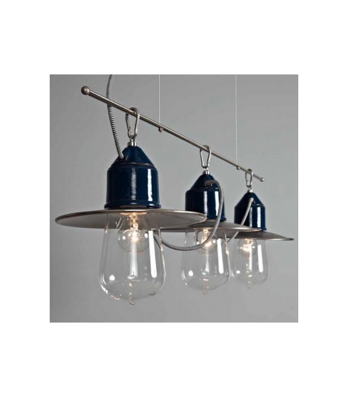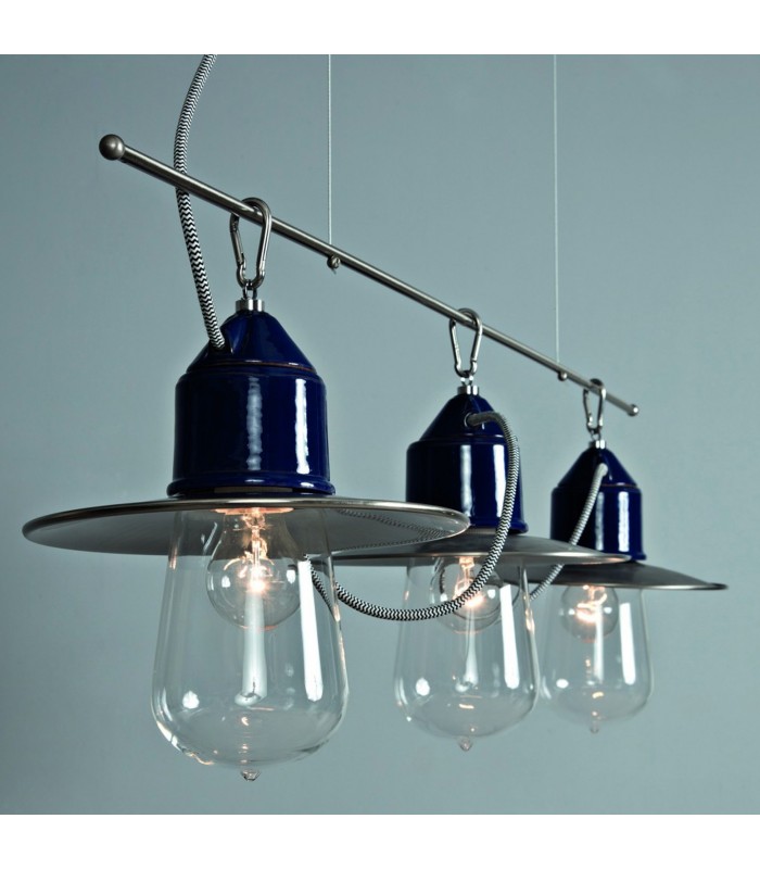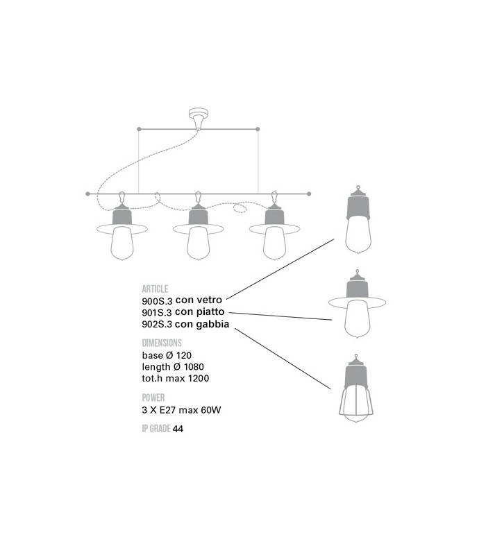 NOVECENTO 901S.3: L. 100 cm Vetro Ø10 H.120 - 3 x LED E27. IP44 - VERSIONE TRE LUCI