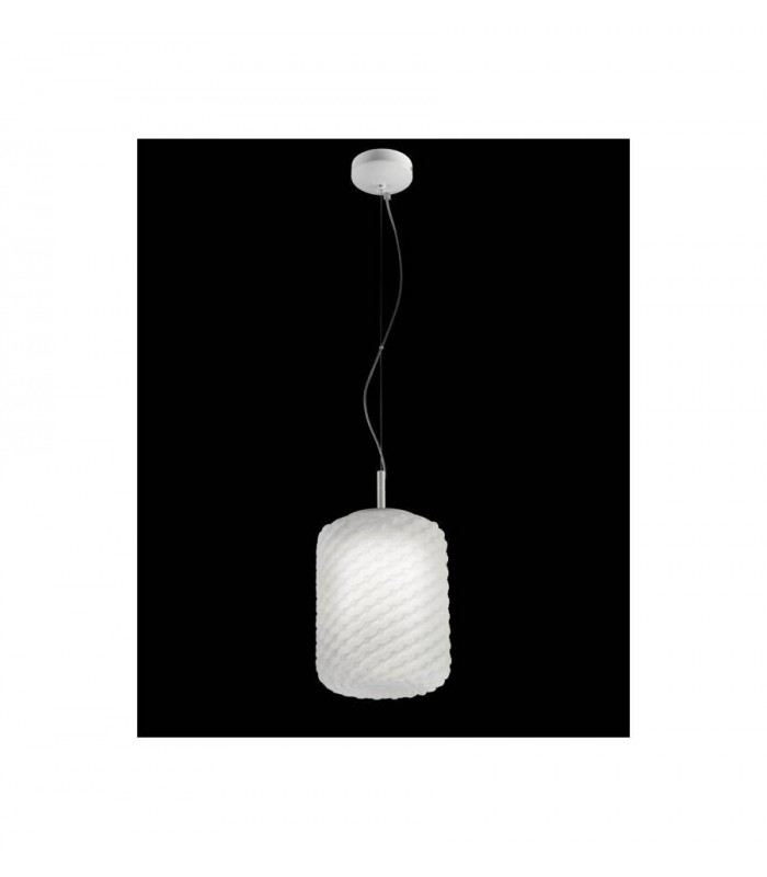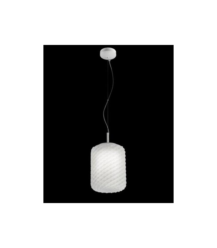 Domino è dotata di una struttura in metallo verniciata in bianco e da un diffusore cilindrico in vetro soffiato dalla speciale lavorazione alveolare in rilievo che rende la lampada davvero particolare sia a luce spenta che a luce accesa. Il vetro inoltre rende la luce morbida e diffusa.