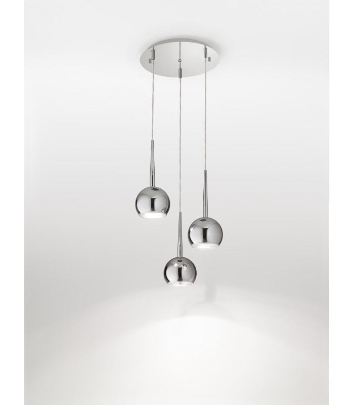 Bol tre luci è costituita da una struttura in metallo cromato con finitura specchio mentre il riflettore interno in metallo cromato presenta una finitura sabbiata in modo da rendere la luce più omogenea possibile senza abbagliare.