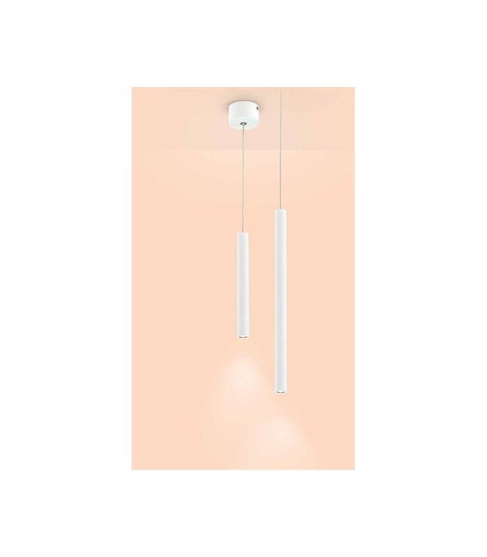 Lampade a Led che emettono luce diretta verso il basso in modo preciso e morbido. Tubi ha una forma tubolare realizzata in metallo verniciato in bianco con finitura sabbiata che la rende elegante e sofisticata.