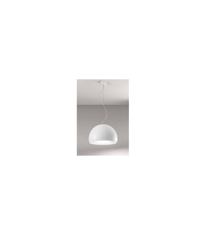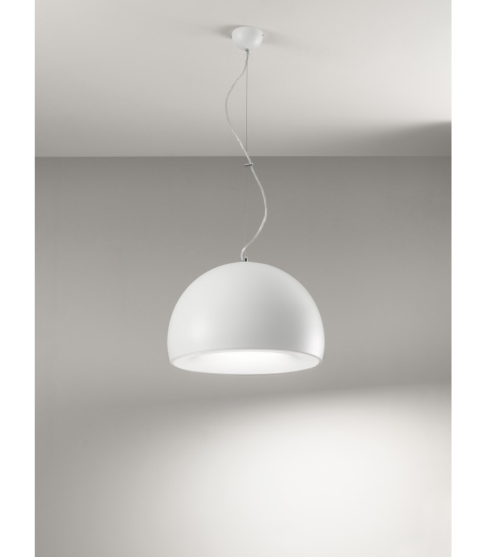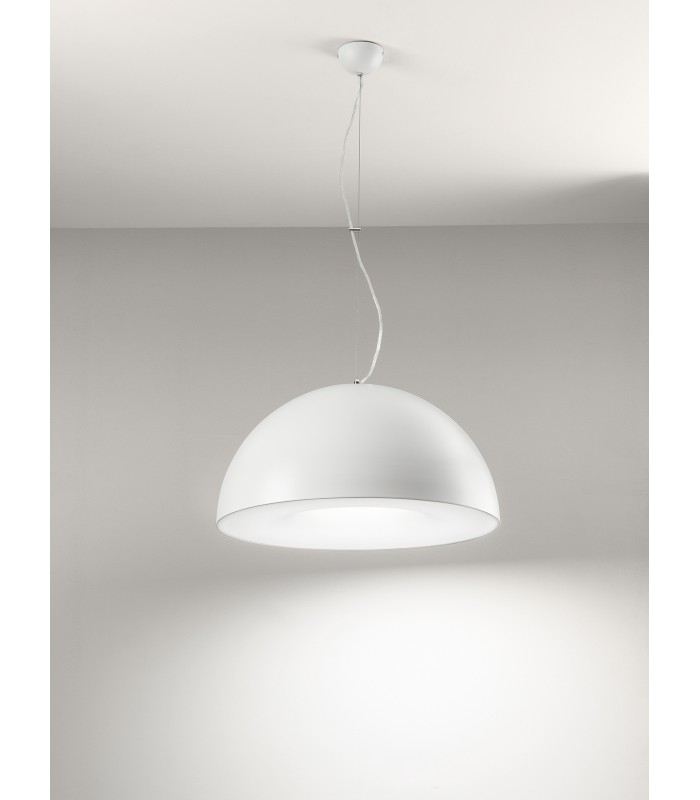 Lampada in sospensione a Led con struttura in metallo verniciato bianco. Due misure disponibili.
