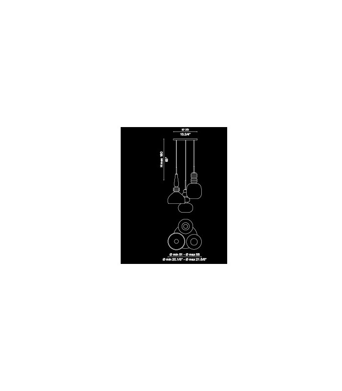 Carnival SO D35: D min 51 cm, D max 55 cm, D rosone 35 cm, H max 160 cm - 3 x 7W LED E27 - 2700°K - 810lm