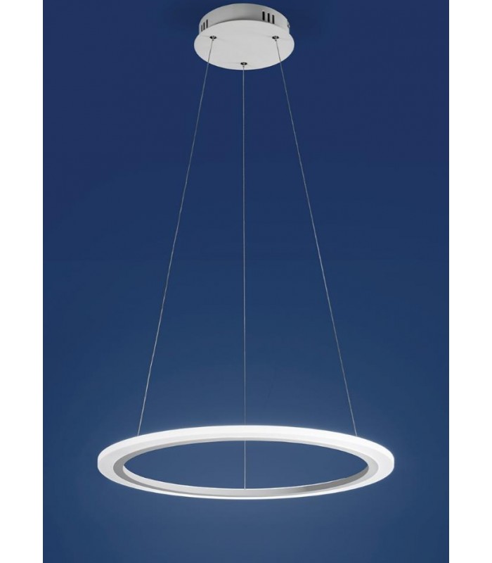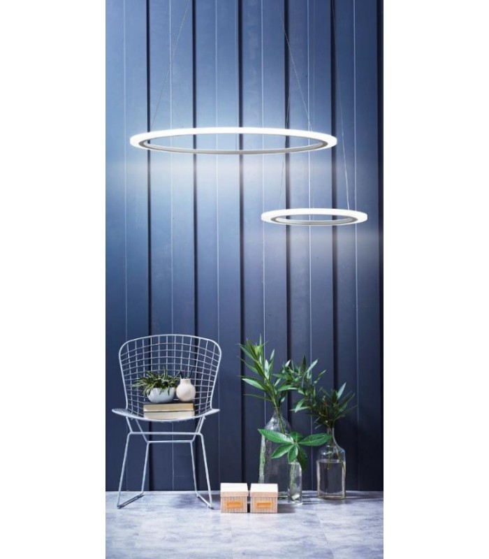 Un cerchio luminoso sospeso nello spazio che con discrezione illumina e arreda i vostri ambienti. A luce accesa il cerchio si illumina divenendo il protagonista degli ambienti per creare un effetto luminoso davvero affascinante e sofisticato. Il Led posto all'esterno del cerchio permette un'ottima distribuzione della luce che ne risulta morbida e diffusa in tutto l'ambiente circostante.