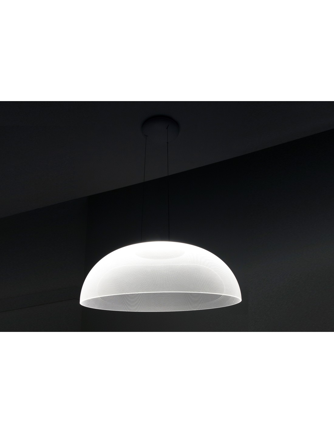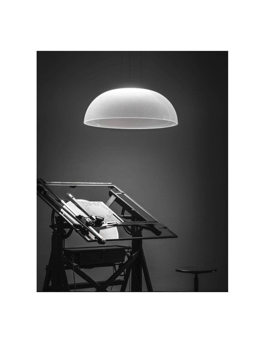 Una lampada a sospensione tecnologica e di design perfetta per illuminare il tavolo da pranzo, per illuminare la cucina, per illuminare la zona living o per illuminare il tavolo da lavoro dello studio.