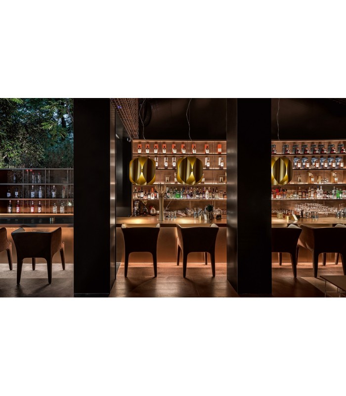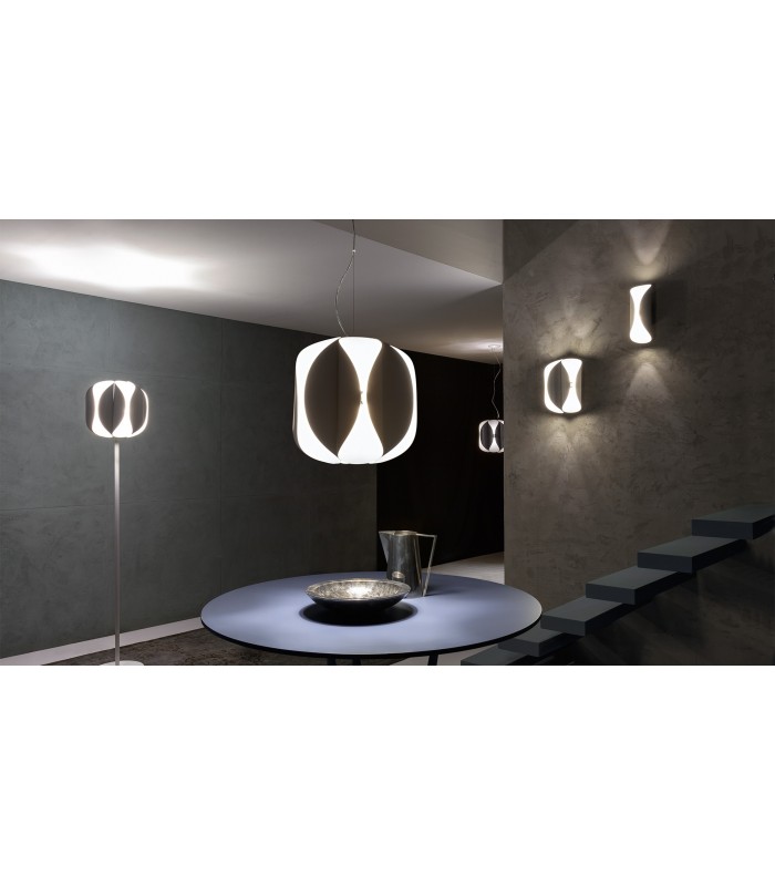 La luce all'interno di ogni elemento curvo in rifrazione con la parte esterna genera effetti di chiaro - scuri che sottolineano le linee morbide del diffusore.
