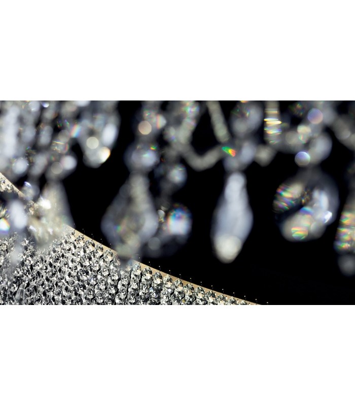 Eclisse lampada a sospensione di Vintage Light4 è composta da una struttura lineare in metallo verniciato disponibile nei nuovi colori: bronzo spazzolato, oro spazzolato e nero RAL 9005. Nella sottile struttura in metallo è contenuta la fonte luminosa LED con grado di colorazione di 3000K che sovrasta la doppia cascata di cristalli trasparenti molati a mano. Una pioggia di luce! Quando la lampada è accesa, la StripLED irradia i cristalli che brillano di purezza e creando un effetto di luce e scenografico che lascerà voi e vostri ospiti senza fiato! Vintage Light4 Eclisse è una lampada a sospensione lussuosa ed innovativa, una lampada di design e dalle fattezze rigorosamente made in Italy che illumina gli spazi creando scenari luminosi che suscitano emozioni.