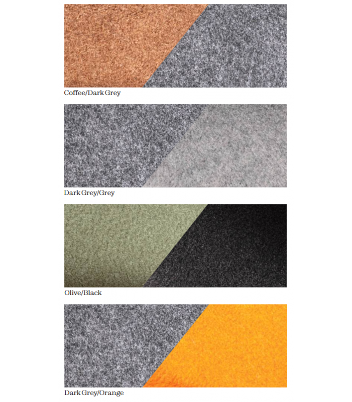 Il diffusore è realizzato in feltro fonoassorbente di polietilene tereftalato, disponibile in combinazioni di colori sofisticate.